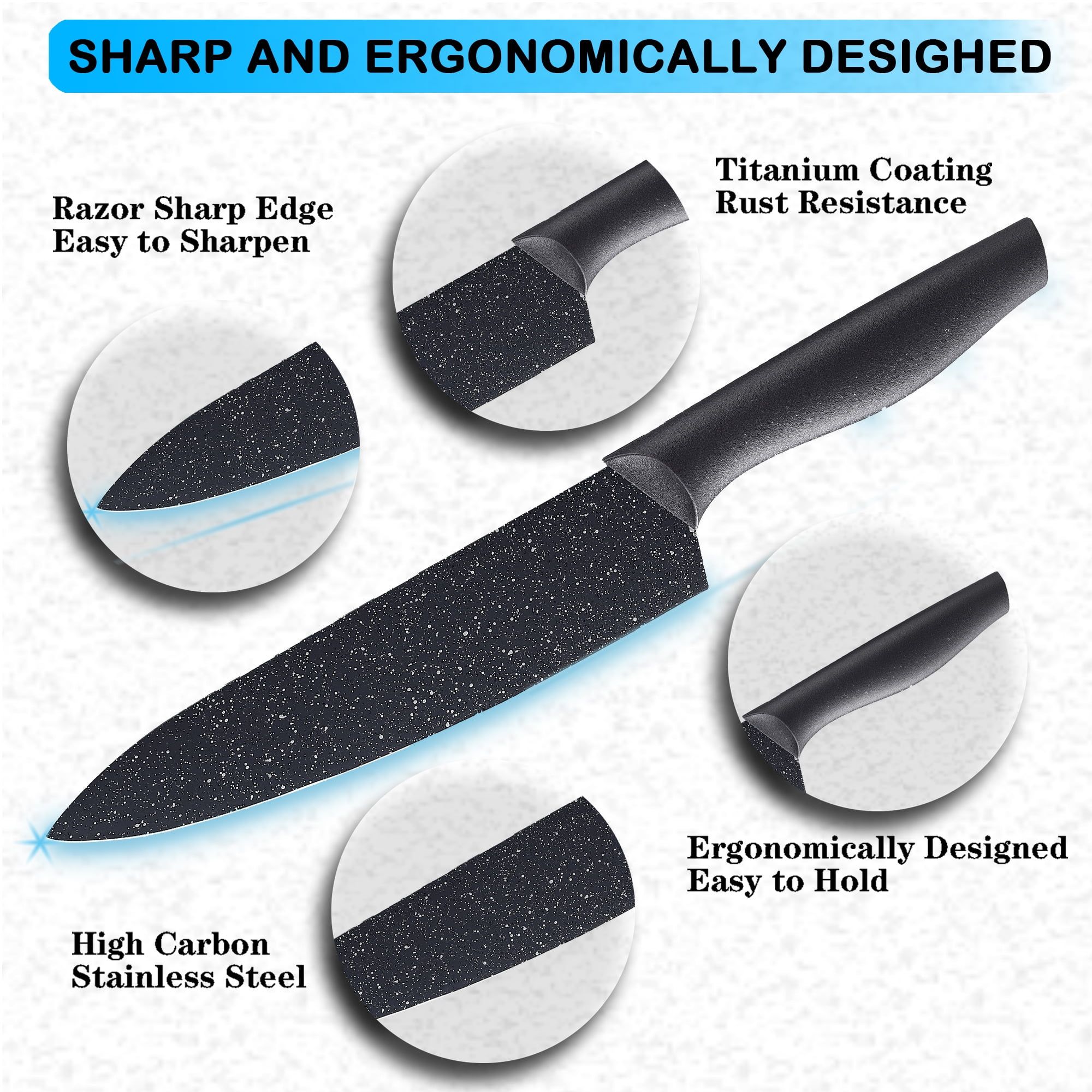 12-Piece Granite Kitchen Knife Set, High Carbon German Stainless Steel Knives Set with Blade Guards, Non-stick Coating, Ultra Sharp, Dishwasher Safe 12-Piece Granite Kitchen Knife Set, High Carbon German Stainless Steel Knives Set with Blade Guards, Non-stick Coating, Ultra Sharp, Dishwasher Safe 12-Piece Granite Kitchen Knife Set, High Carbon German Stainless Steel Knives Set with Blade Guards, Non-stick Coating, Ultra Sharp, Dishwasher Safe