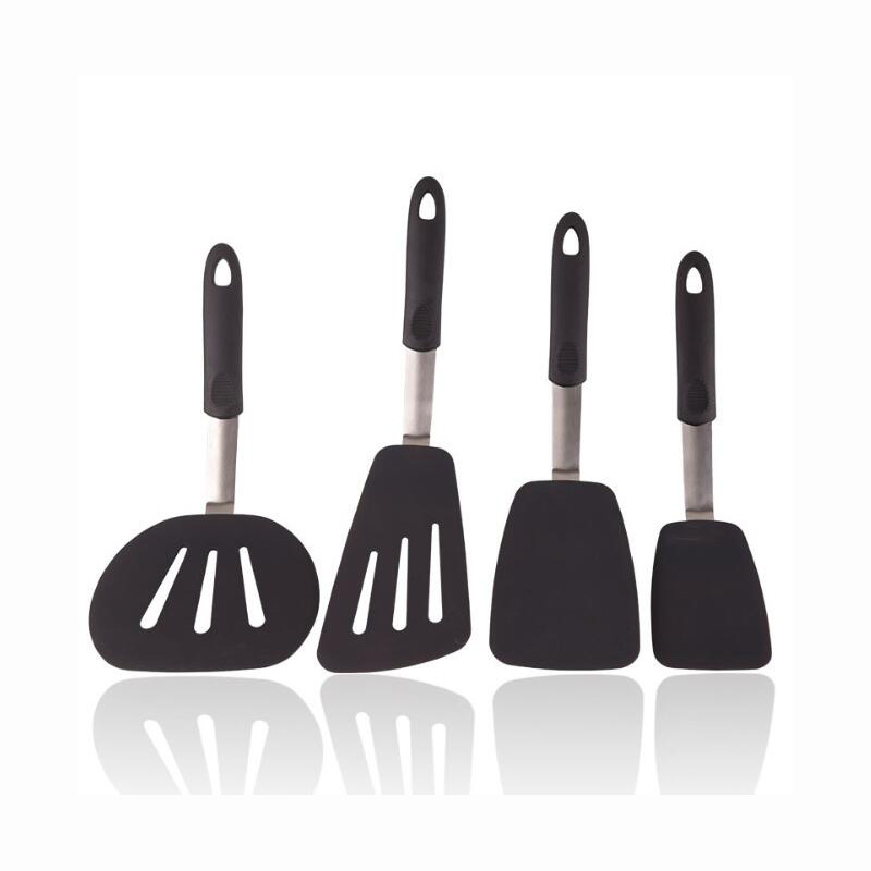 5.TURNER SPATULA 4-PIECE SET: 4-piece kitchen cooking spatula, one of the essential kitchen cooking spatulas for home, can meet your different needs. Including large slotted shovel, medium slotted shovel, medium solid shovel and small solid shovel.You can use Silicone Spatula Set to flip burgers and v